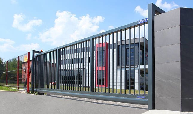 Bramy przesuwne o konstrukcji samonośnej, marki Wiśniowski oraz produkcji własnej, wypełnione panelem kratowym bądź profilami zakmknietymi, ocynkowane, z możliwością malowania na wybrany kolor. Brama może być zautomatyzowana.